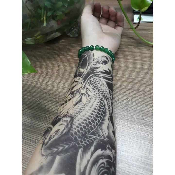 Hình xăm cá chép màu xanh là biểu tượng cho con trai trong một gia đình, đem lại nhiều sự an nhiên và bình thản trong cuộc sống gia đình.